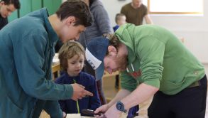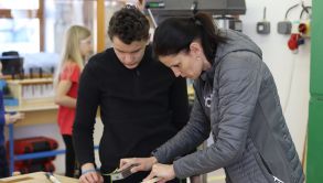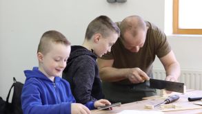 Žáci odborného učiliště také pomáhali účastníkům s některými činnostmi. „Rodičům a dětem zde pomáhám, jak správně pracovat s danými nástroji a materiálem, nebo jak dále postupovat při sestavování jednotlivých částí výrobku, obsluhuji také vrtačku,“ popsal svou roli Jindřich Slípka, student druhého ročníku oboru Truhlář, který také zmínil, jak se k řemeslu dostal: „Už od malička jsem se zajímal o práci se dřevem stejně jako můj táta, tak jsem si řekl, že by bylo fajn se na školu podívat a třeba se tomu i věnovat. Obor mě baví, do budoucna si umím představit, že bych se tím i živil, láká mě oblast nábytkářství.“