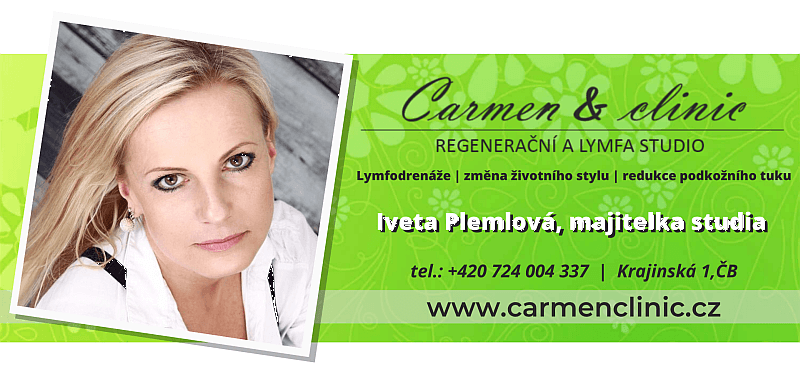 Ve studiu Carmen & clinic pomáháme klientům se změnou životního stylu. Poskytujeme výživové poradenství, čištění a detoxikaci těla pomocí lymfodrenáže i kosmetickou péči. Zakládáme si na profesionálním a vstřícném přístupu. Od 1.3. se naše studio přestěhovalo na novou adresu, abychom Vám mohly nabídnout vyšší komfort služeb. Nově nás tedy najdete v Krajinské 1. Těšíme se na Vaši návštěvu v novém studiu Carmen & clinic