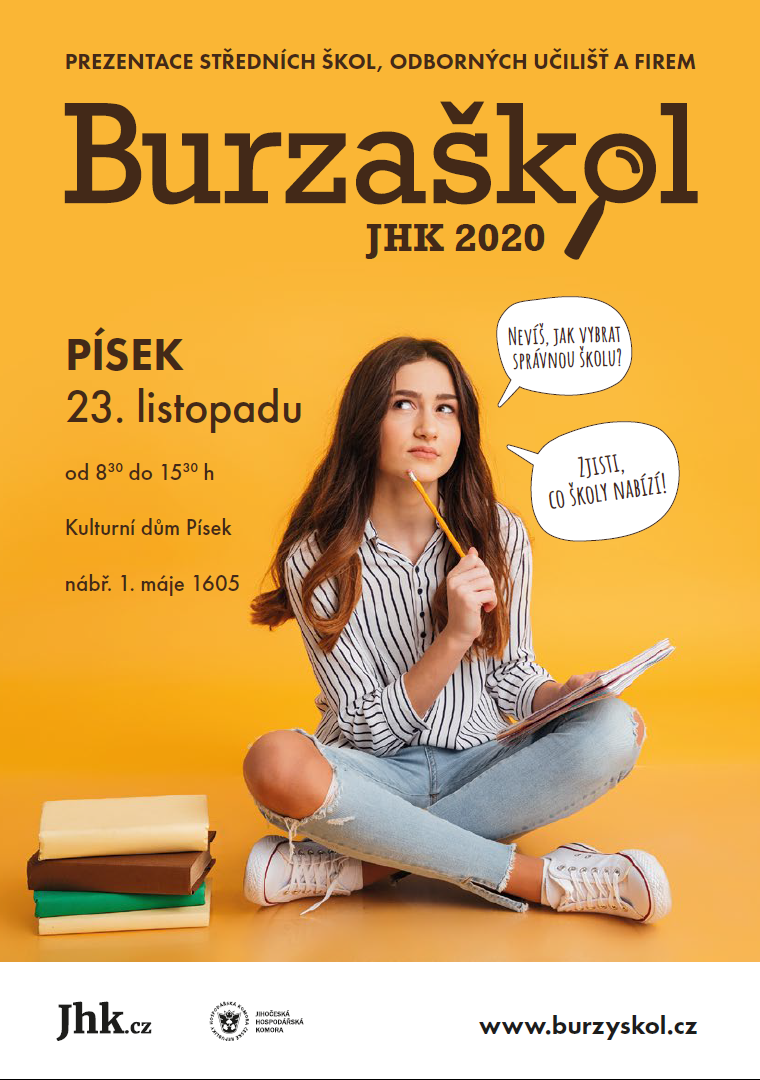 UPOZORNĚNÍ: AKCE JE ZRUŠENA.Z důvodu nepříznivé epidemiologické situace jsme nuceni již tradiční prezentační výstavu středních škol a učilišť zrušit. V Kulturním domě se obvykle prezentuje přes 40 škol a firem z Jihočeského kraje. Návštěvníci mají jedinečnou příležitost získat v jeden den a na jednom místě aktuální informace o podmínkách a možnostech dalšího studia na středních školách a učilištích a seznámit se i s možnostmi uplatnění absolventů v praxi. Vstup pro veřejnost je zdarma.