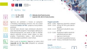 Agentura pro podnikání a inovace ve spolupráci s Jihočeskou hospodářskou komorou Vás zve k účasti na semináři Dotace z OP TAK - podpora a rozvoj Vašeho podnikání.